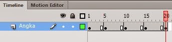 Klik pada frame 15 dan ubah angka 3 menjadi angka 2 dan terakhir klik pada frame 20 kemudian ubah angka 2 menjadi angka 1 pada lembar kerja