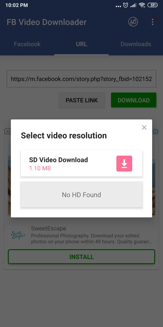 Pertama download terlebih dahulu aplikasi FB Video Downloader klik disiniBuka facebook anda dan carilah video yang akan di download. Ketika sudah mendapatkan video tersebut, klik share dan pilih share ke aplikasi FB Video Downloader. Maka akan langsung muncul pilihan download video seperti dibawah iniAtau bisa juga dengan cara copy link video tersebut dengan klik menu pojok sebelah kanan atas video dan pilih copy linkKemudian buka aplikasi FB Video Downloader dan pilih tab URL, klik tombol paste link dan klik Download. Maka secara otomatis akan muncul tampilan download video.Itulah cara Download Video Facebook menggunakan aplikasi FB Video Downloader. Semoga bermanfaat. -