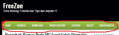 Kali ini saya akan share sedikit tentang bagaimana mengganti , menghapus atau merubah menu pada template blogger. Mungkin sebagian blogger sudah tau cara ini, tapi bagi pemula hal ini mungkin agak sedikit kurang dipahami.Sebelumnya download template blogger di btemplates.com, situs penyedia template blogger. Pada situs itu terdapat beberapa template blogger dengan berbagai variasi. Terapkan pada blog anda dan lihat apakah ada menu-menu bawaaan dari template tersebut. Jika ada, kita dapat merubahnya sendiri dan disesuaikan dengan menu dari blog kita. Yang ingin belajar modifikasi tema template blog dapat mengikuti panduanSebagai contoh berikut menu standar template yang saya download dan akan saya ganti sesuai dengan menu pada blog saya.
