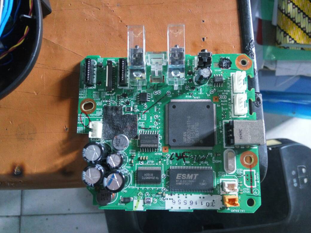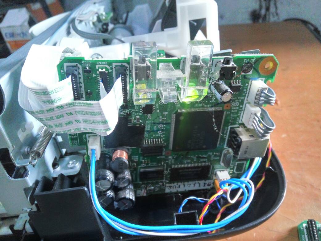 Saya sempat berpikir bahwa kerusakan terjadi pada bagian sensor printer. Dan saat itu juga saya membersihkan sensor-sensor yang berada pada printer tersebut. Tetapi tidak menyelesaikan masalah.