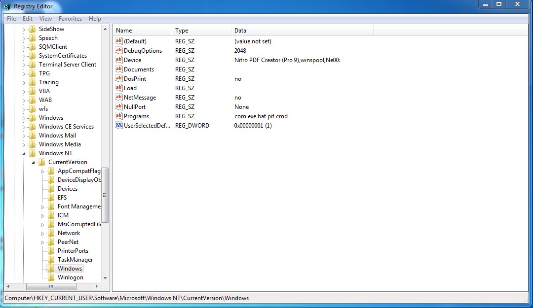 Kemarin, saya sempat lagi mengalami error pada salah satu komputer teman. Dimana error terjadi di Ms Excel, pada saat ngeprint, list printer yang baru saja di instal tidak tampil. Tetapi jika di cek di Device and Printer, list printer tersebut ada dan aktif.Selain itu jika menggunakan Ms Word dan aplikasi lainnya, list printer tersebut ada dan tidak ada masalah saat print. Tidak hanya error pada Ms Excel tetapi error juga terjadi ketika kita akan mengganti default printer, dimana error yang muncul adalah ERROR 0X00000709.Nah untuk mengatasi masalah tersebut caranya cukup mudah, kita hanya perlu merubah registri. Caranya, jalankan Run dengan cara ketik Wndows + R pada keyboard dan ketik regedit. Setelah itu masuk ke HKEY_CURRENT_USER >> Software >> Microsoft >> Windows NT >> CurrentVersion >> WindowsUbah permission Windows dengan cara klik windows kemudian pilih edit – permission. Centang Full Control dan klik oke, refresh / log off atau restart untuk melihat hasilnya. Coba ubah default printer dan test print dengan menggunakan MS Excel.Jika cara diatas tidak berhasil, coba hapus Key Device (disebelah kanan) dalam folder windows dan restar lagi komputer kamu.Selamat mencoba. -