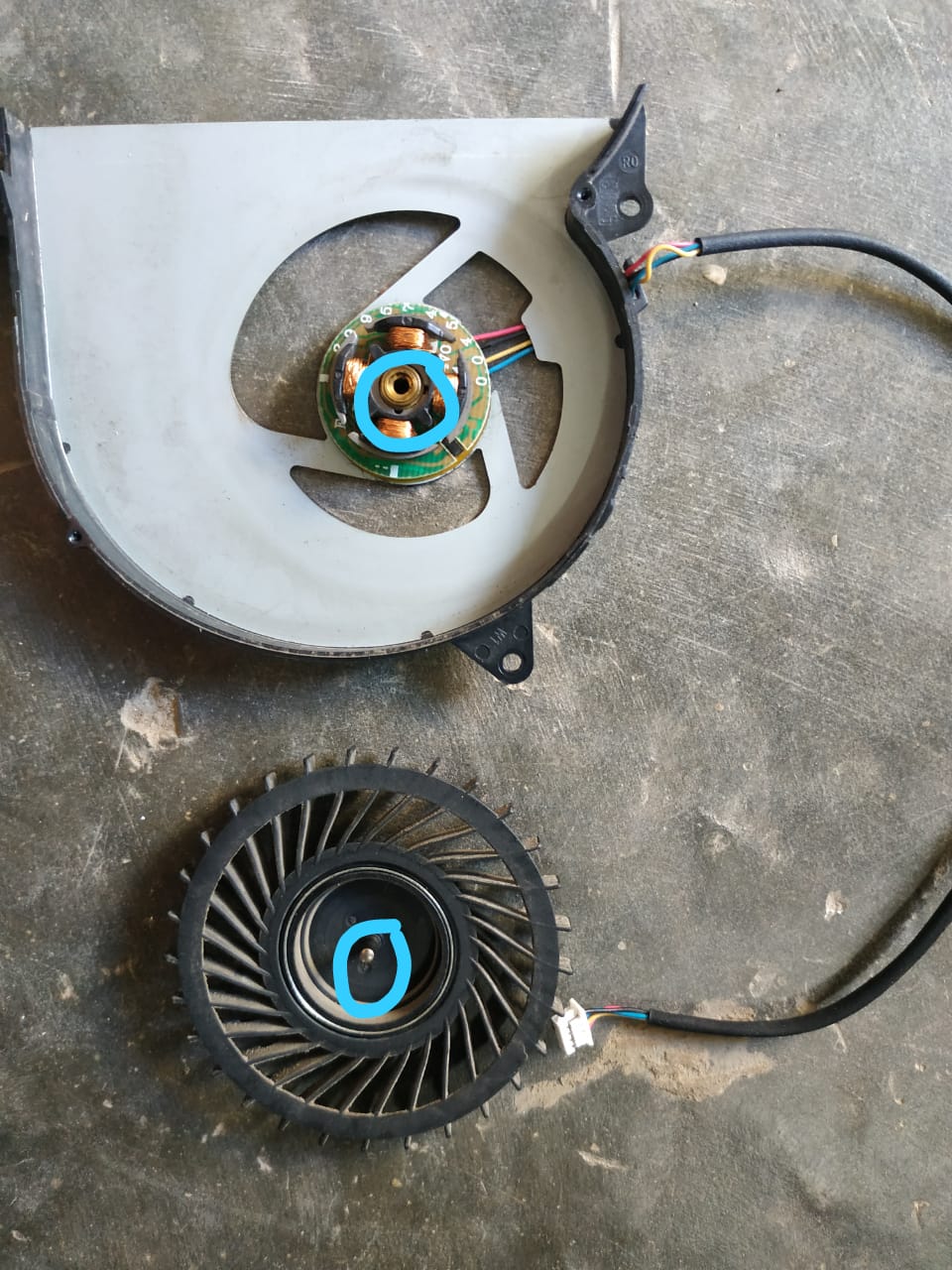 Seperti contoh dibawah ini saya membersihkan kipas laptop dan memberikan pelumas pada bagian tengahnya. Hasilnya tidak ada lagi suara berisik yang keluar dari kipas tersebut.