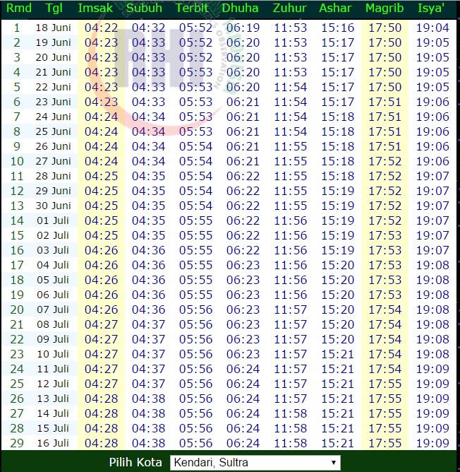 Jadwal Imsakiya atau Buka Puasa Daerah Kendari berdasarkan Situs Rukyatulhilal