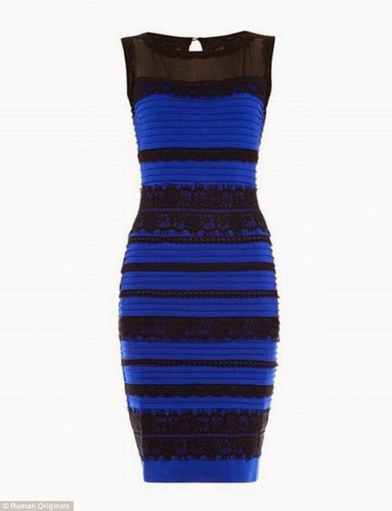 Baru-baru ini terdapat sebuah foto gaun yang menjadi perdebatan di dunia maya. Dan hal inipun yang juga saya alami. Saya melihat gaun ini berwarna putih dengan warna emas. Namun anehnya dari 6 orang yang saya panggil, mengatakan bahwa gaun ini berwarna biru hitam. Hmmmm jadi pusing dan aneh sendiri.
