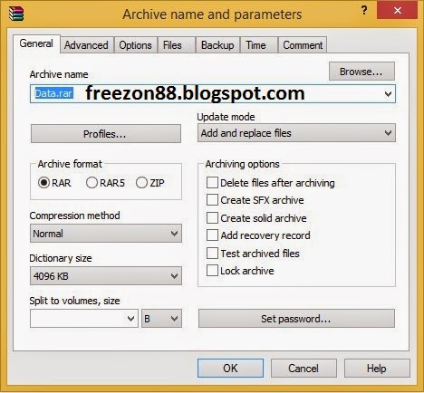 Disini saya hanya akan menjelaskan fungsi yang sering digunakan. Perhatikan gambar diatas. Untuk merubah nama file tersebut dapat merubahnya pada kolom Archive name, ubah nama file sesuai yang diinginkan.