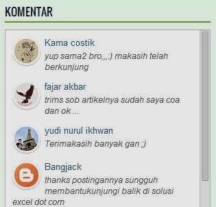 Membuat widget komentar atau recent comment di blogspot. Widget komentar pada blogger tidak terdapat dalam bawaan blog, sehingga ada kode tersendiri untuk membuat widget tersebut. Kali ini saya akan share cara membuat widget komentar dengan avatar atau gambar profil g+. widget ini akan menampilkan komentar-komentar pada blog dengan disertai dengan foto profil (avatar).